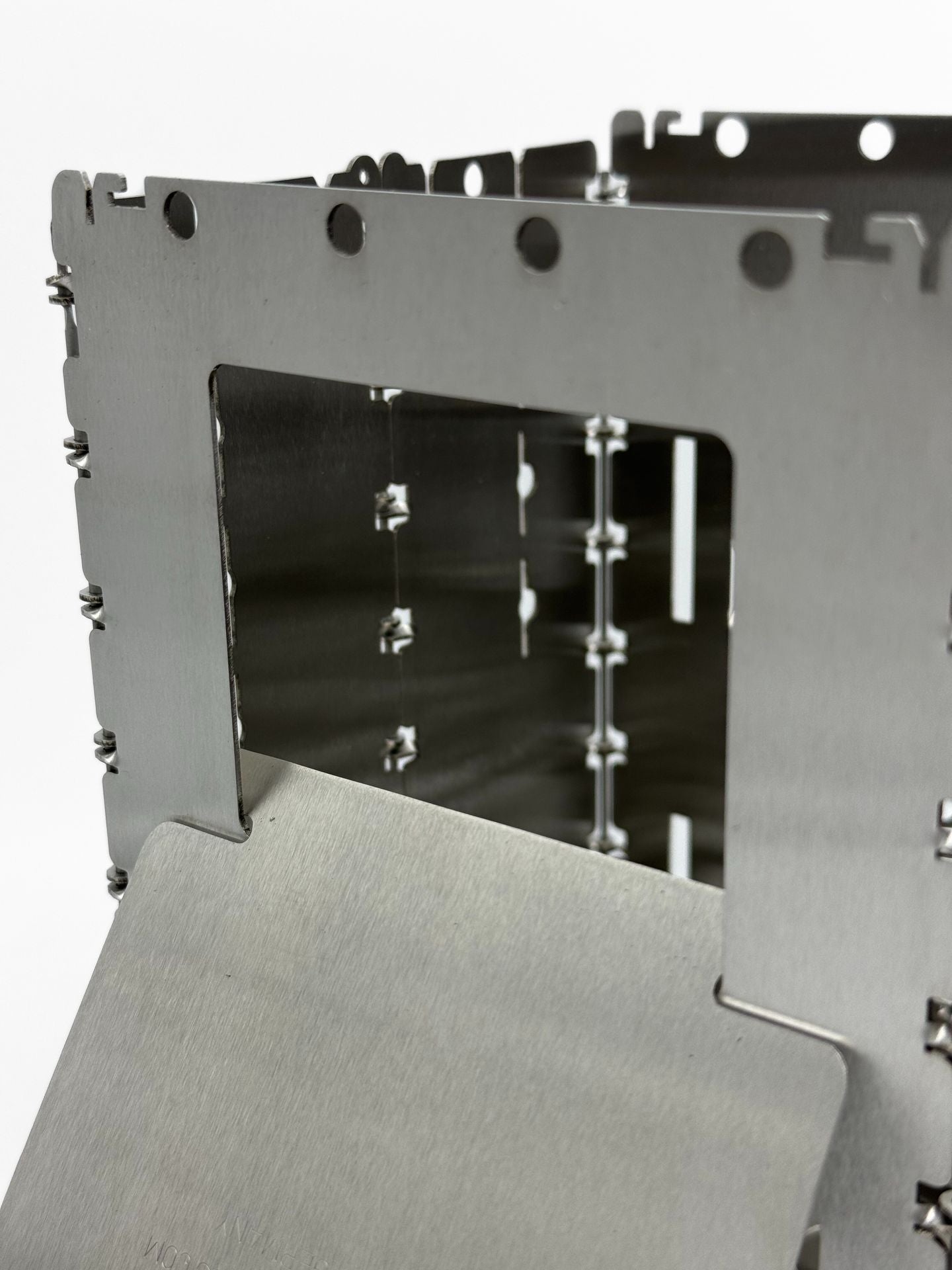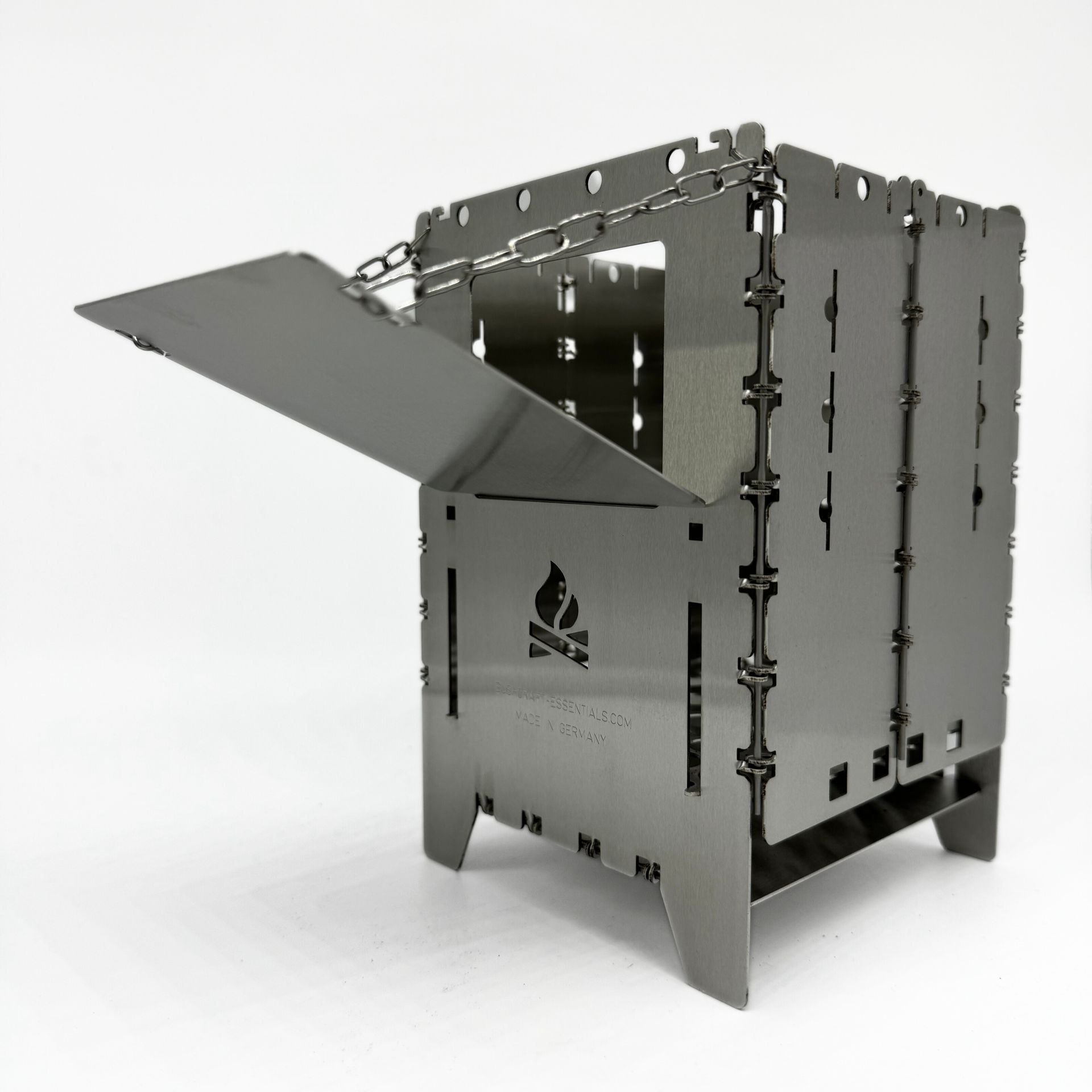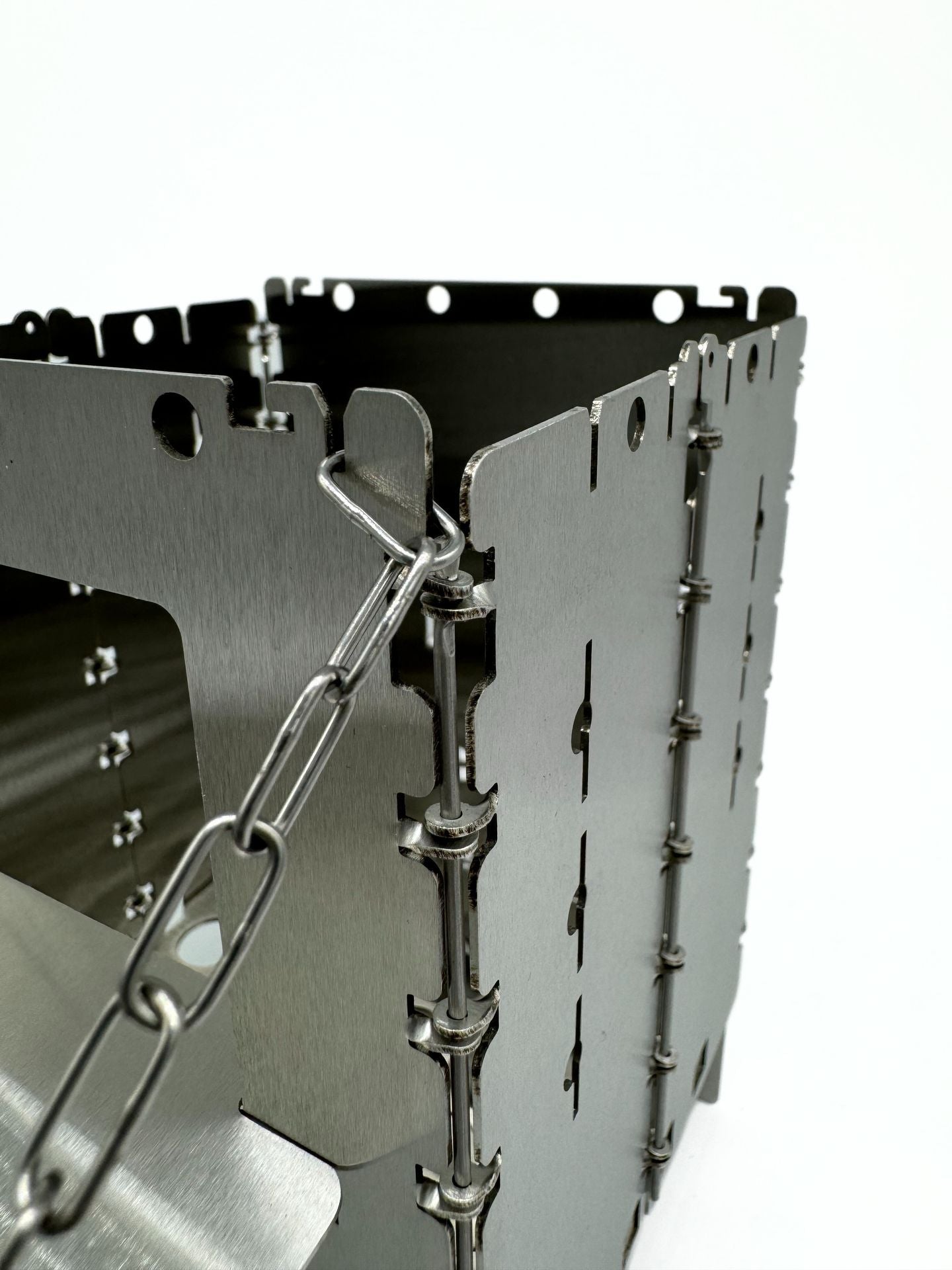The Wood Slide enhances your cooking experience and enjoyment of the fire by automatically feeding firewood into the fire chamber of your Bushbox LF. There's no need for constant wood additions; simply feed longer branches from the start and focus on cooking or relaxing by the fire.