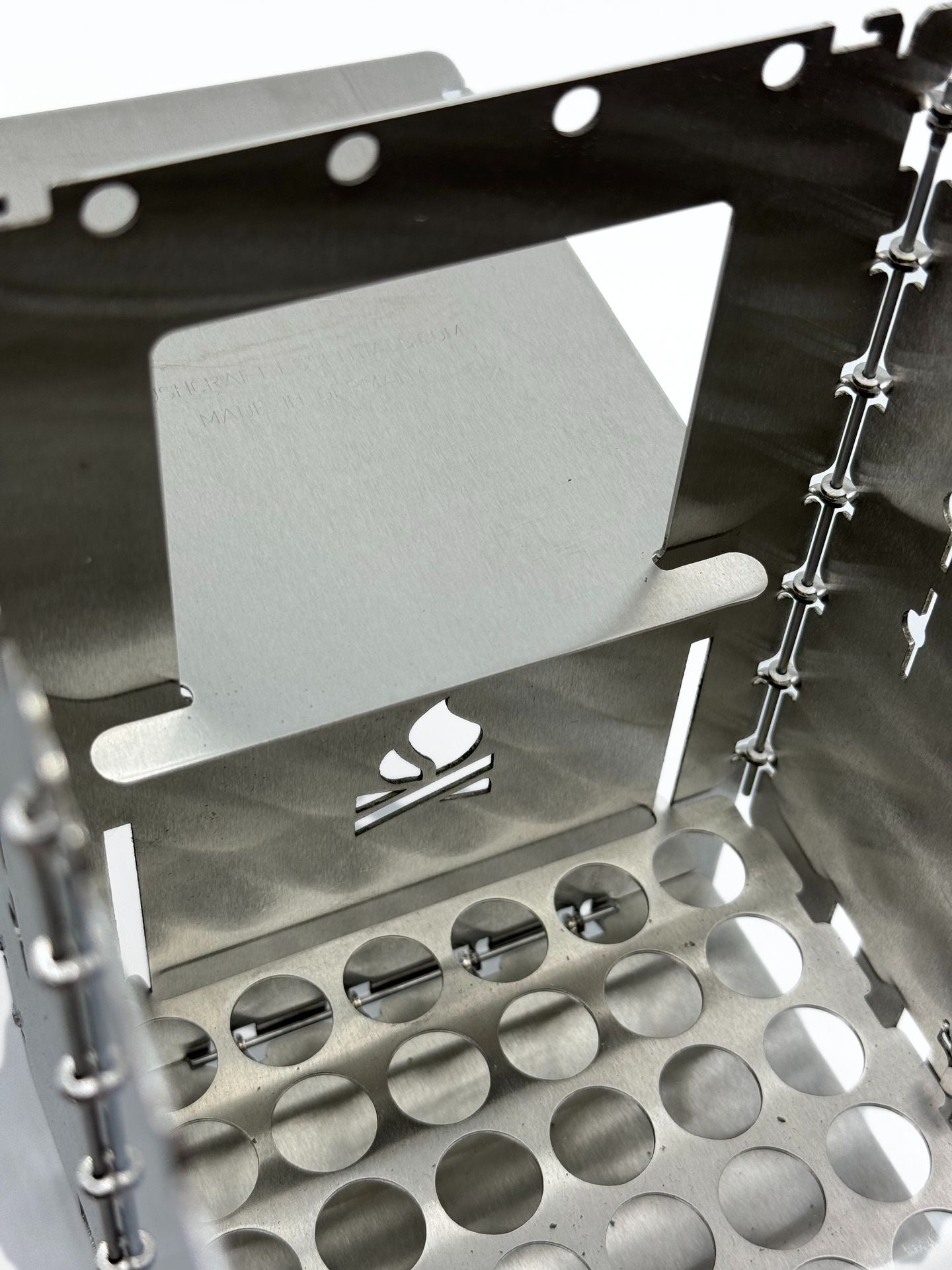 - Light your Bushbox fire as usual and add the appropriate amount of fuel. Once the fire starts, you can add wood through the Wood Slide. The wood will automatically slide in as the fire burns, so you don't need to constantly add burnable material. Meanwhile, you can prepare food on the Bushbox using our Trivets or Universal Grate.
