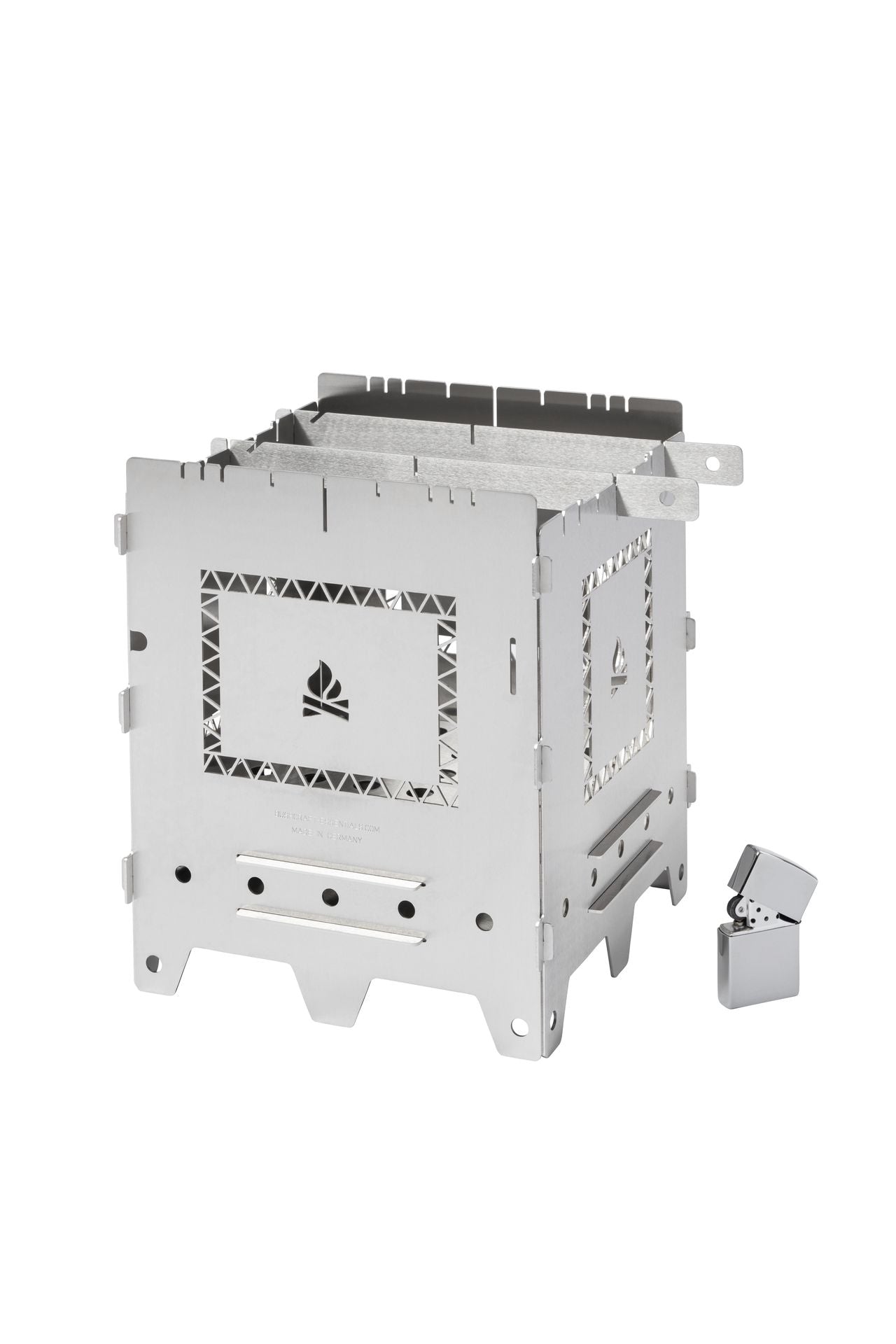 - Thanks to the clever design, warping is reduced to a minimum even when operating for hours in campfire mode, so that the functionality and mechanism of the Bushbox are always guaranteed.