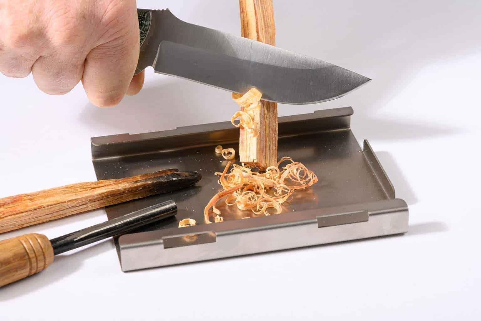 • Use as a fireproof, dry surface to make feather sticks or scrape bark to start a fire. The ignited material can be slid directly from the case into your Bushbox.