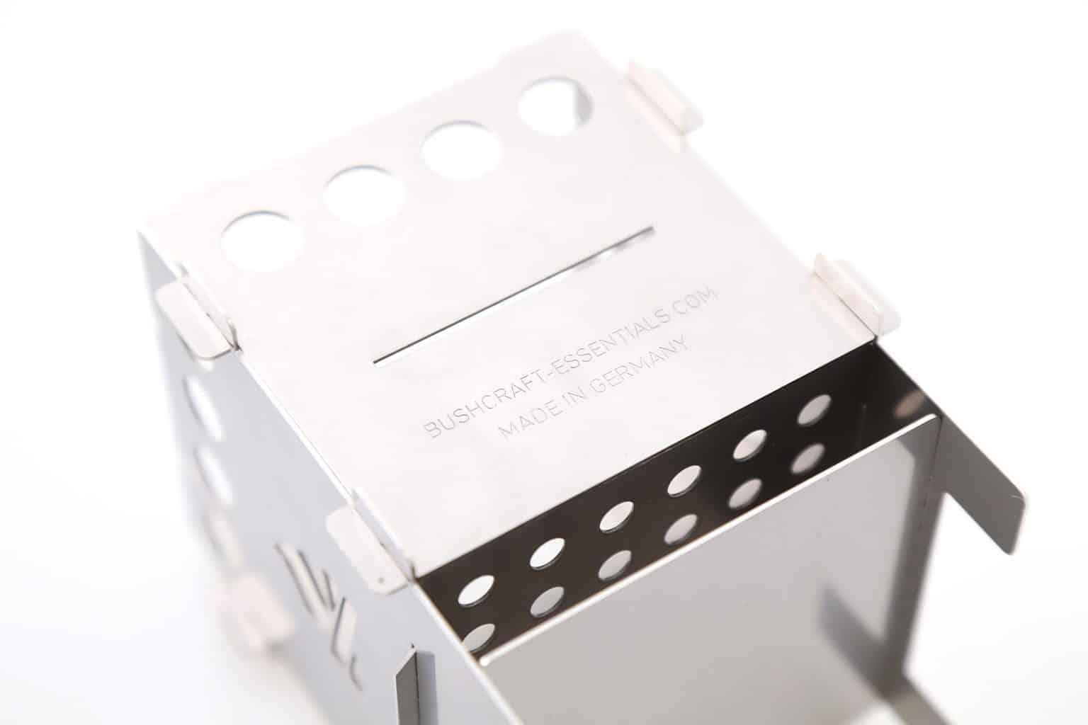 - BUILT TO LAST, BEST SELLING ORIGINAL DESIGN: 100% Stainless Steel; designed and manufactured in Germany; MAINTENANCE: The Bushcraft Essentials stoves require almost no care and maintenance but be sure to keep the stove free from dirt and wipe it down from time to time. Keep the holes in the base plate clear and unclogged as to get the most optimal and efficient fire.