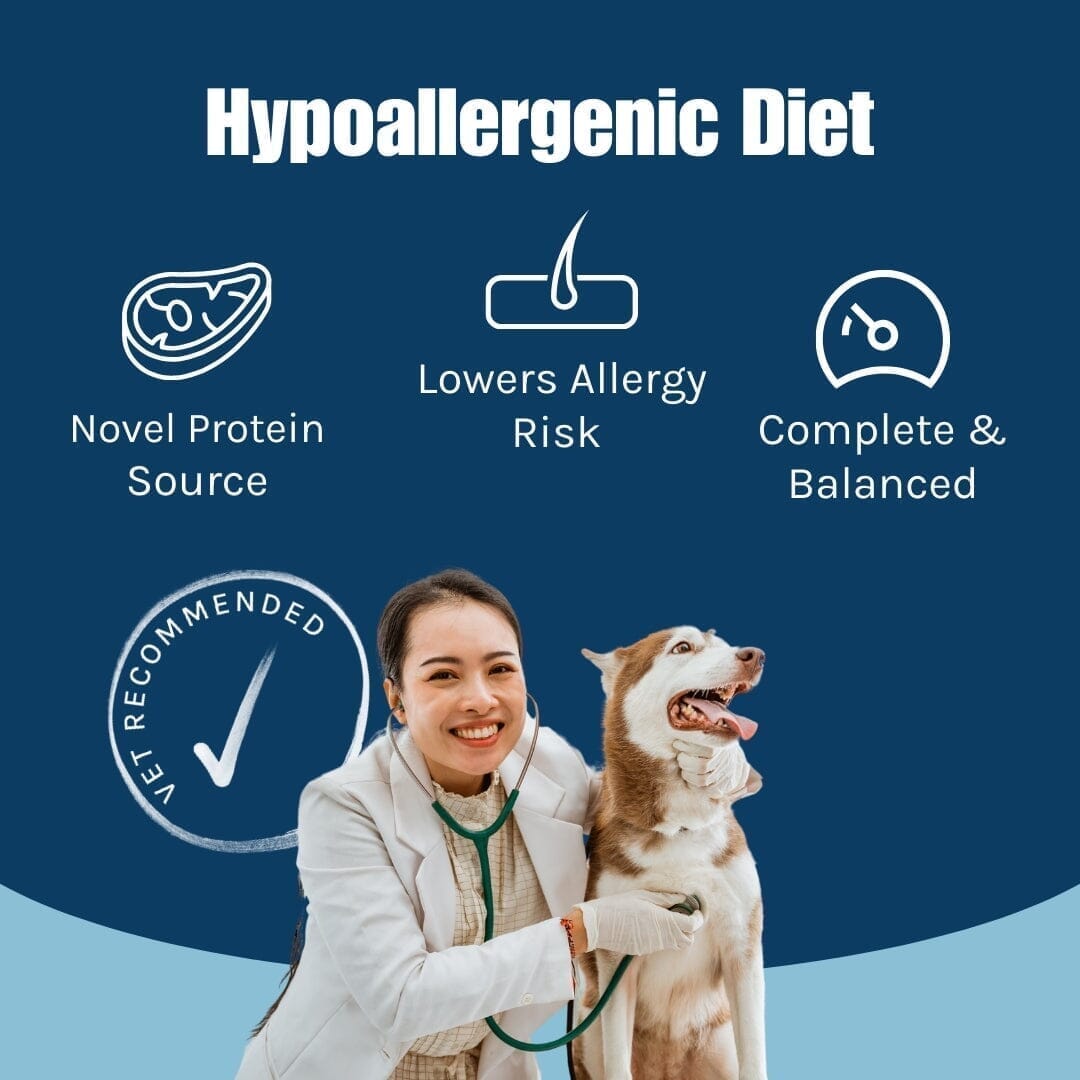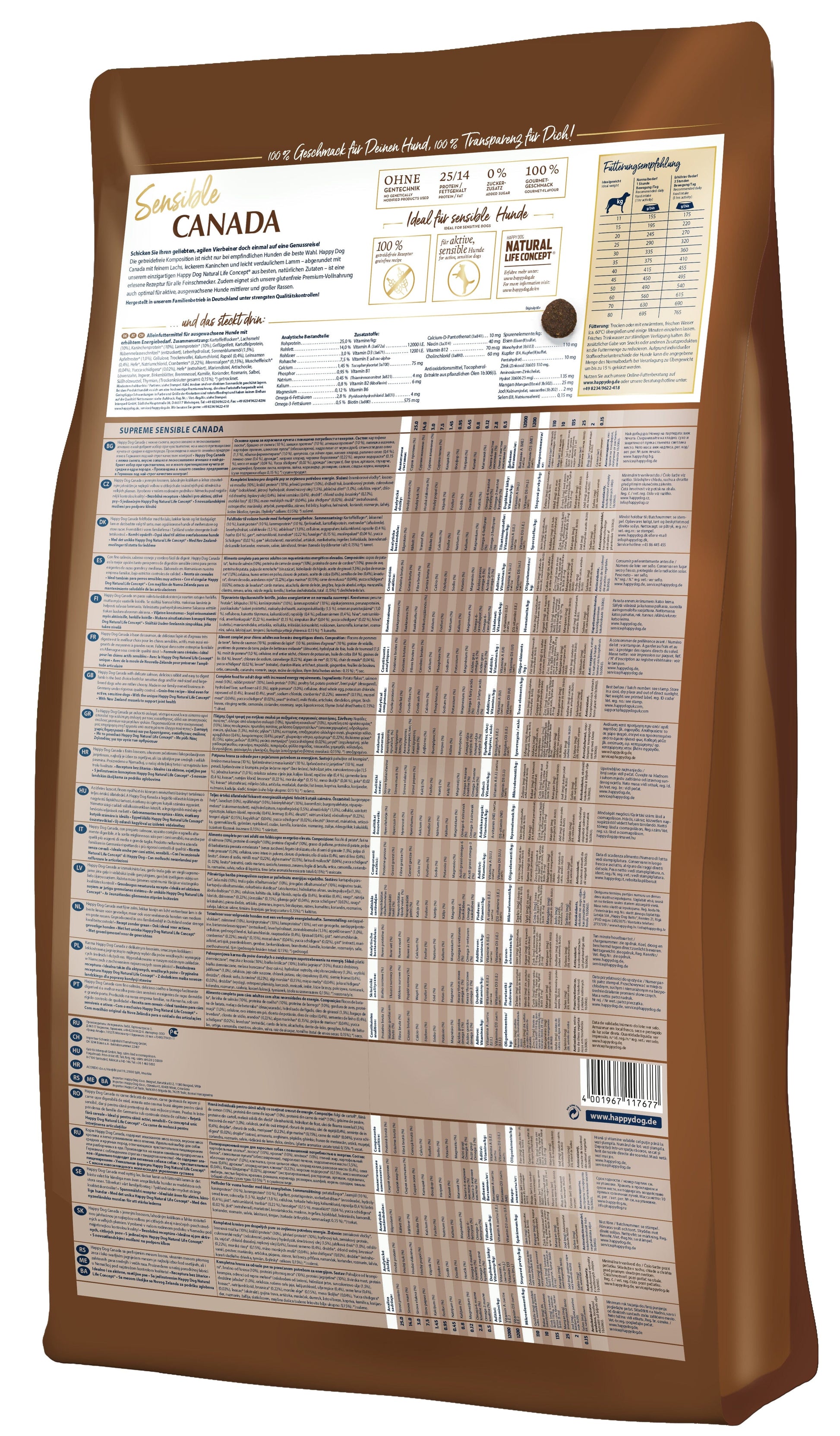 Happy Dog Canada combines salmon, rabbit, and lamb in a grain-free, gluten-free recipe — perfect for active sensitive dogs with a higher protein %.