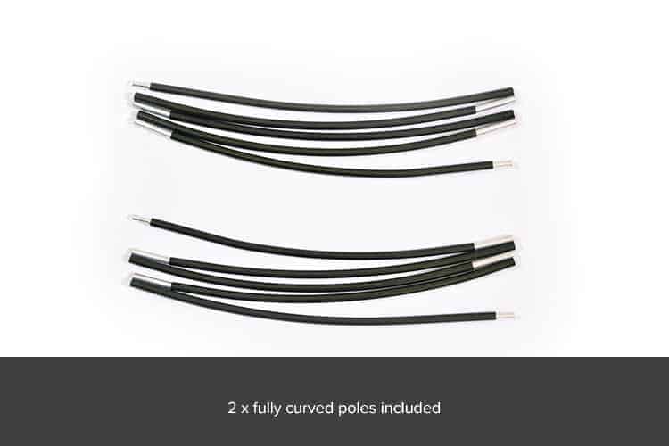 2 x full-width curved spreader poles, to create maximum space inside and suspend the net