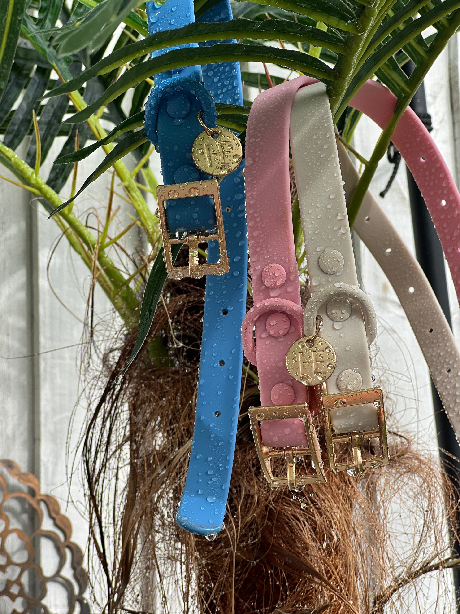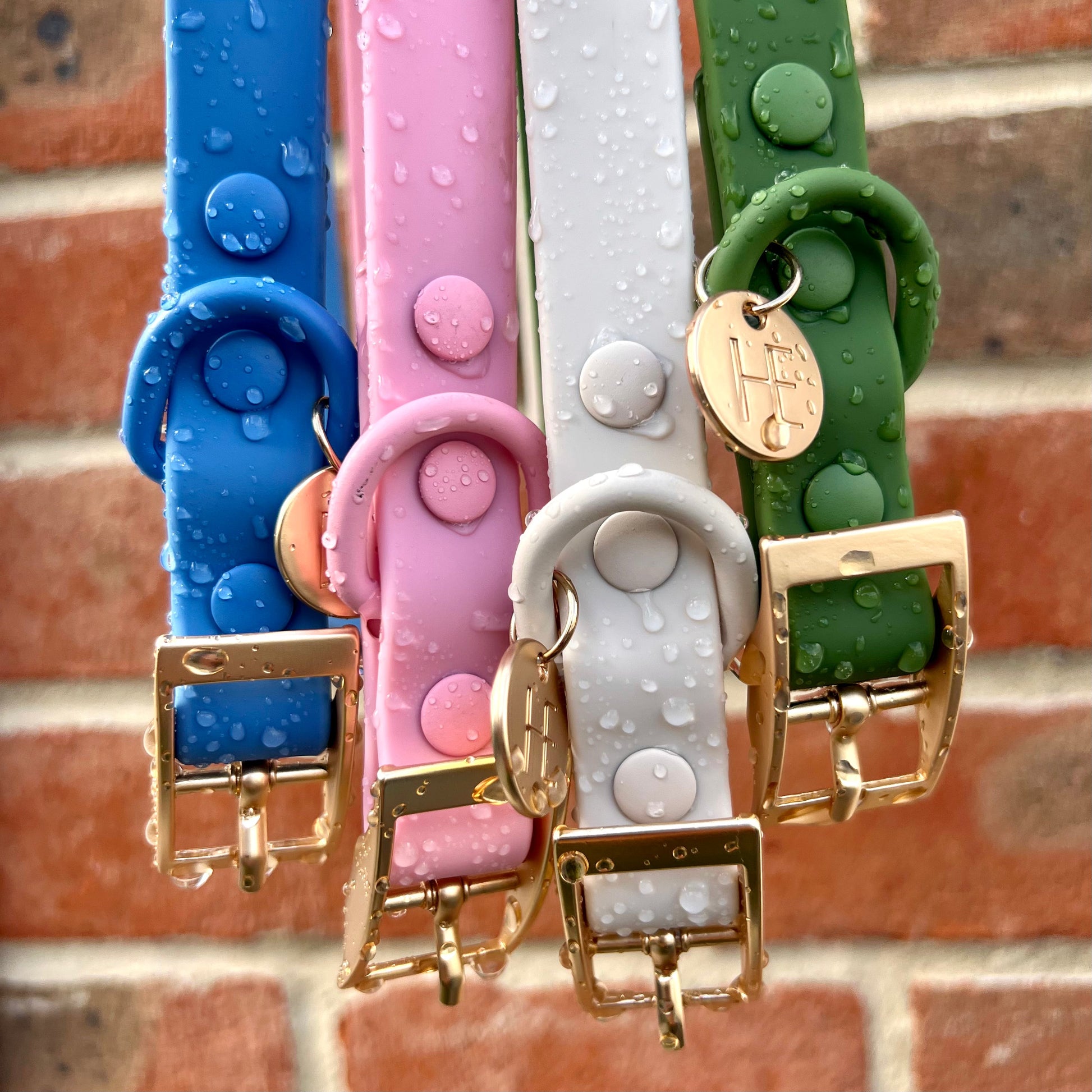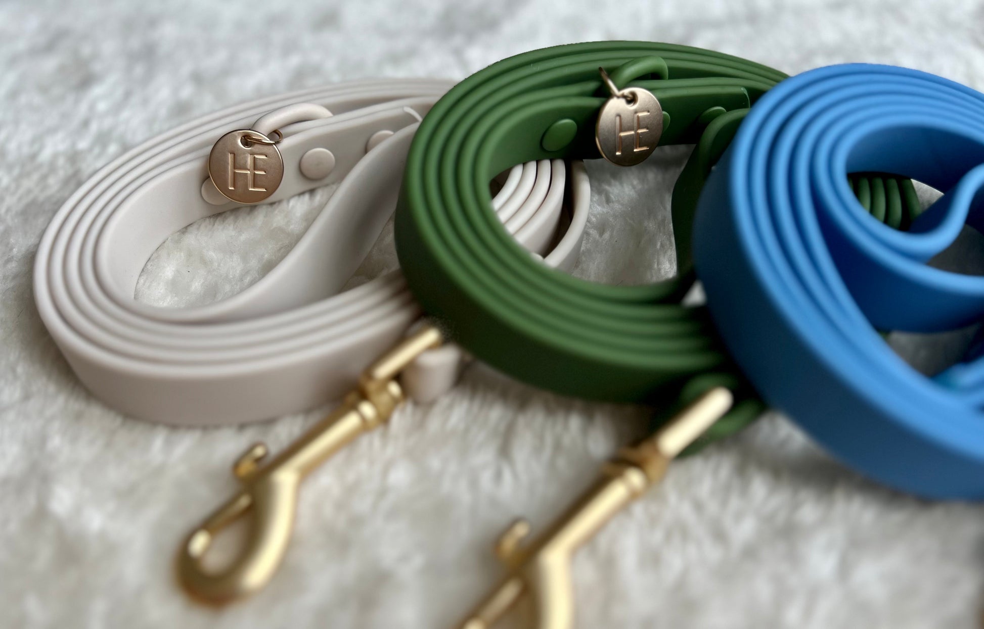 A practical fully waterproof dog lead in a soft, matte finish with complimenting Champagne gold hardware.