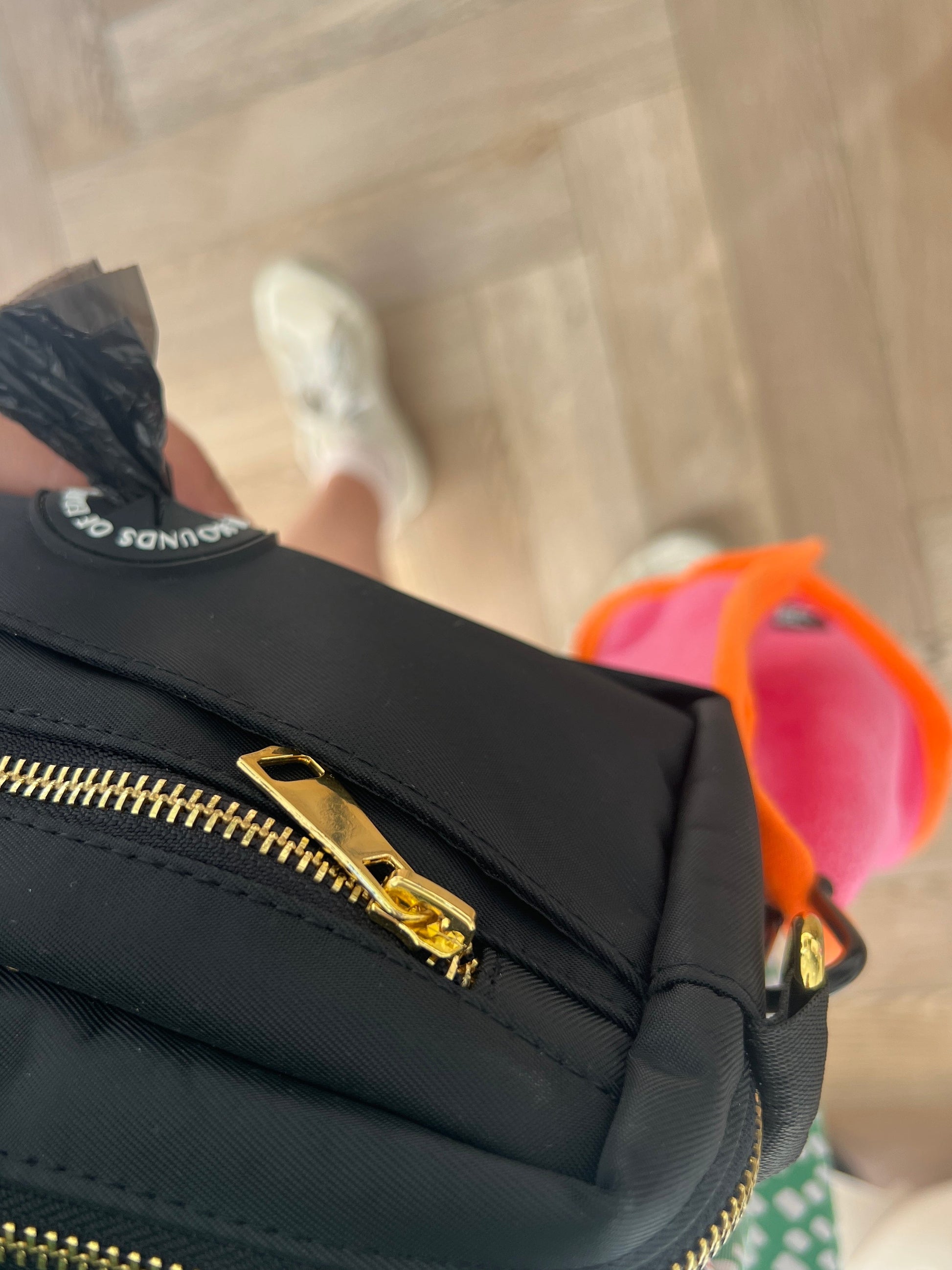 - Metal eyelet + black metal carabiner clip for ease of carrying around.