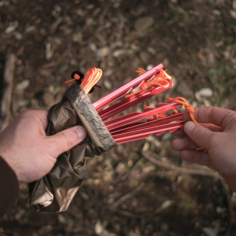 The Stakes & Guyline Peg Bag offers a compact and efficient solution for organizing and protecting tent stakes and guylines, ensuring they're always ready for your next outdoor adventure.