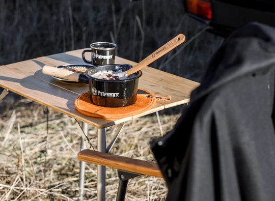 With the Petromax Enamel Pan cooking does not only get a nostalgic notion but is also an easy task. During trips through nature or when camping: The robust enamel cookware is an ideal companion thanks to its low weight. The wooden handle functions as natural heat shield and eases handling over the fire. That way, quick snacks are done in no time.