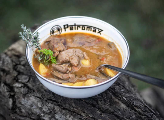 The Petromax Enamel Bowls come in three different sizes for serving hot and cold food in the great outdoors. Tasty fried potatoes, hearty stews, cereal, or dips: There is the right bowl for any dish.