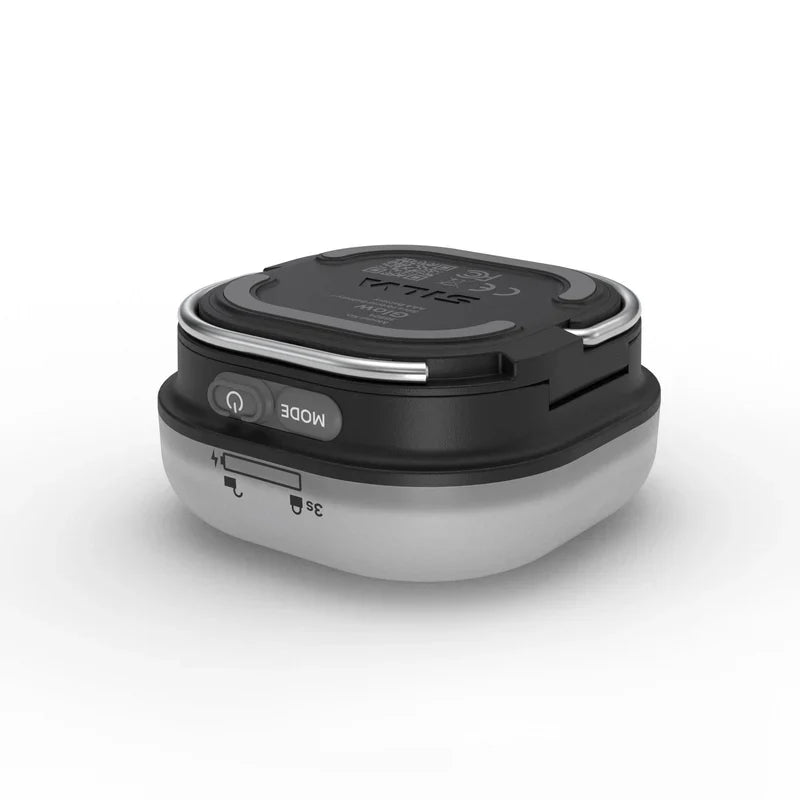 Glow features a compact, lightweight design made from recycled plastic, weighing 61 grams (excluding batteries), and is small enough to fit in your pocket. It is rain-resistant (IPX5), equipped with a lock function, and has backlit buttons for easy on/off operation in the dark. Glow’s anti-slip details allow you to place it on uneven surfaces, whether on the ground or on a table. Use one hook to tilt the lantern or both hooks to hang it in your tent.