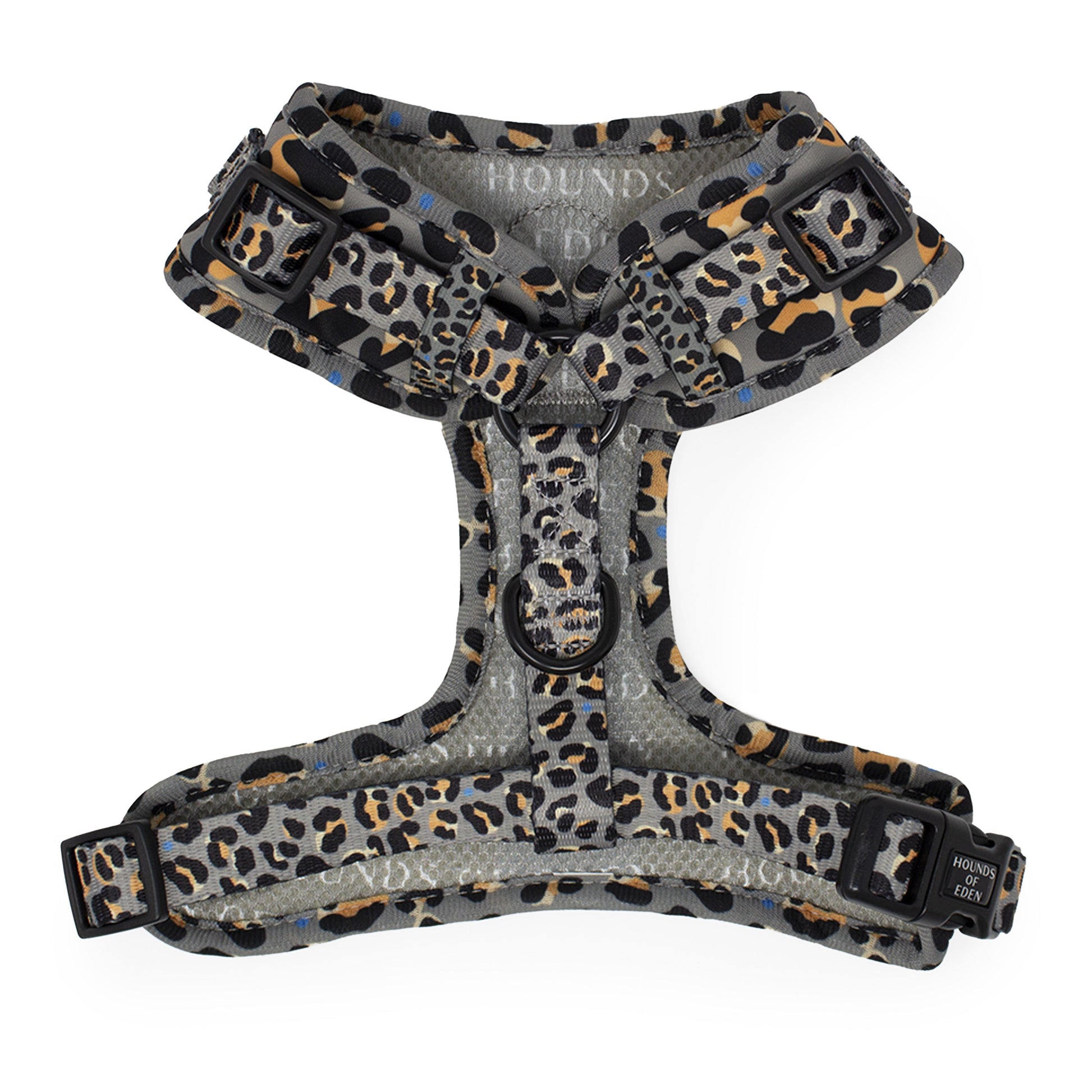 'Steel Leopard' is a super soft & comfortable harness, it is FULLY adjustable in the neck + chest straps meaning you can get the PERFECT fit for your dog.