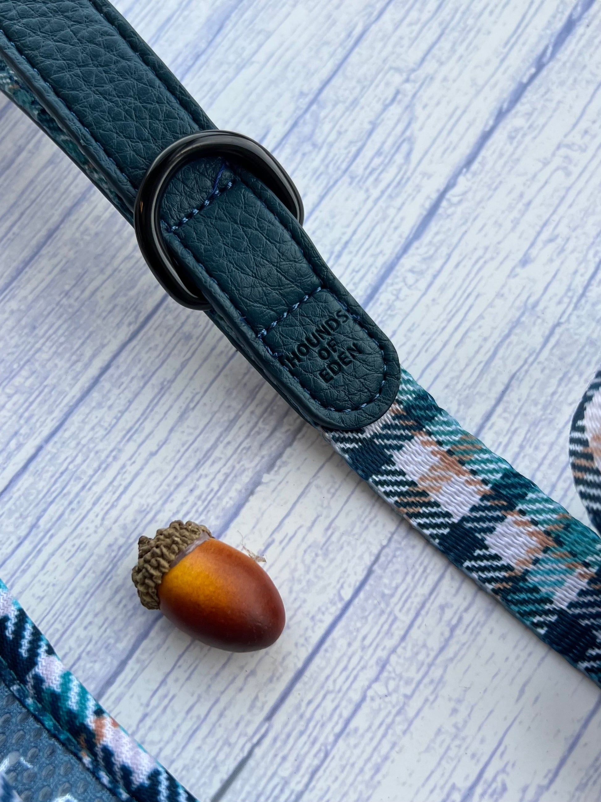 - Vegan Leather decorative strip to front of harness, securing in front D-ring.