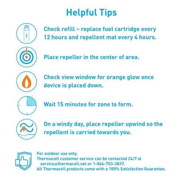 - Package contains 1 Backpacker Repeller, 12 hours of repellent - 3 repellent mats lasting 4 hours each, and 1 water-resistant travel bag. Requires camping gas canister (not included)
