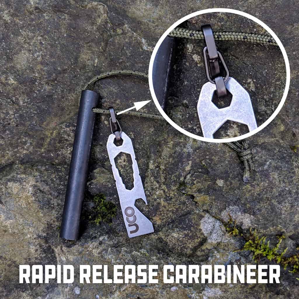 This fire starter has many uses and can ignite tinder or be used to light a campfire, gas stove or gas barbeque. The robust Ferrocerium rod is capable of 20,000 strikes (at 5400 degrees F) in all conditions (at all altitudes and in cold weather). It also comes with a stainless steel striker which also is a multifunctional survival tool with 8 functions. Functions include screwdriver, bottle opener, 4 hex sizes and striker. The bright sparks from the Fire Striker can also be used as an emergency signal. Finally it's all held together with a Paracord lanyard connected to both pieces with a Rapid Release Connector.