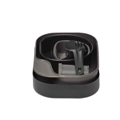 Fully equipped. Includes a plate with lid, Fold-A-Cup® Big, Fold-A-Cup®, Cutting board, Shaker and Spork.