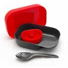 When weight matters, The Camp-A-Box Light contains just what you need for a light meal. Includes a plate with lid, a Fold-A-Cup Original and a Spork.